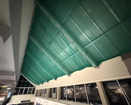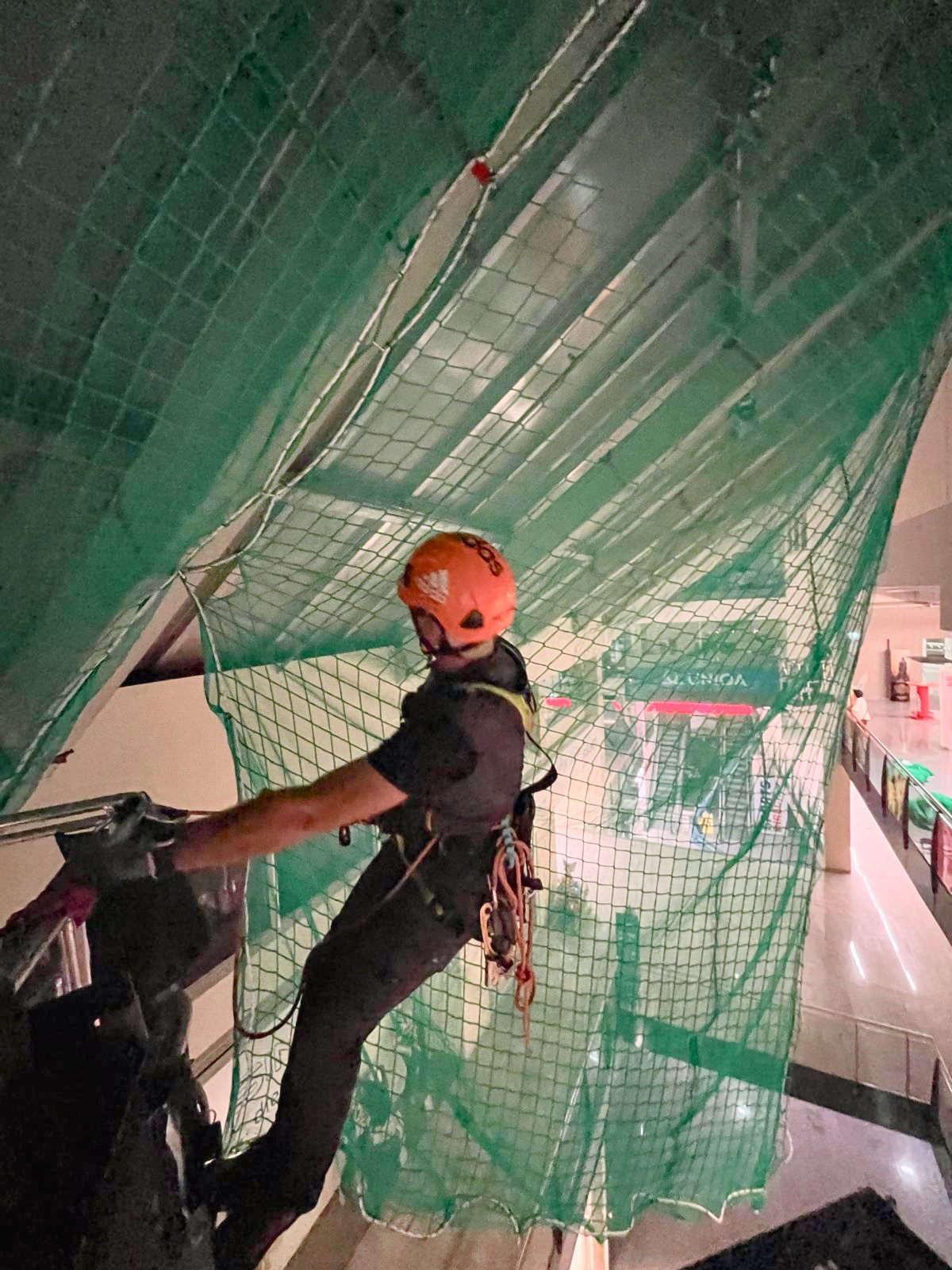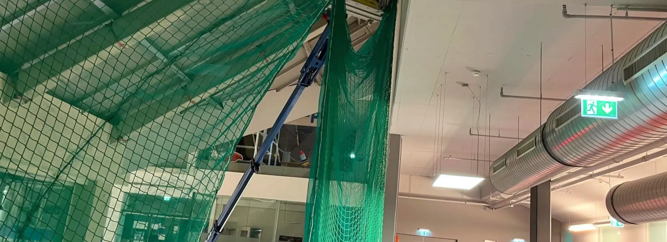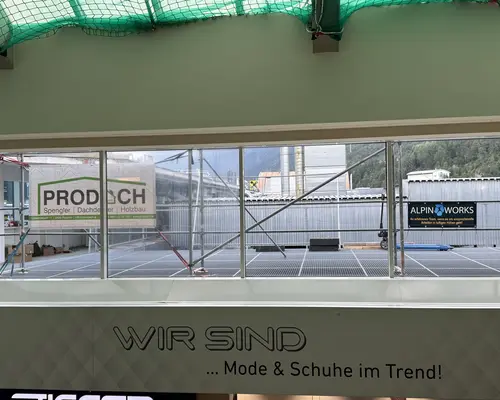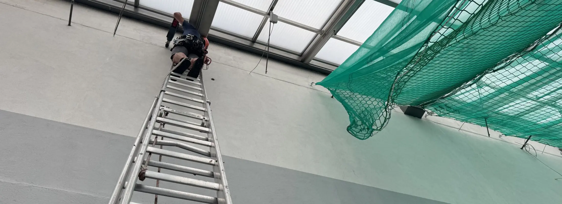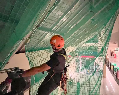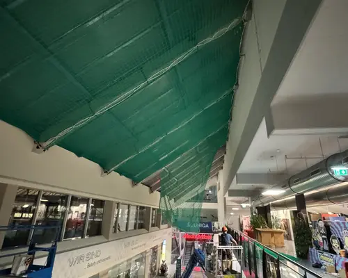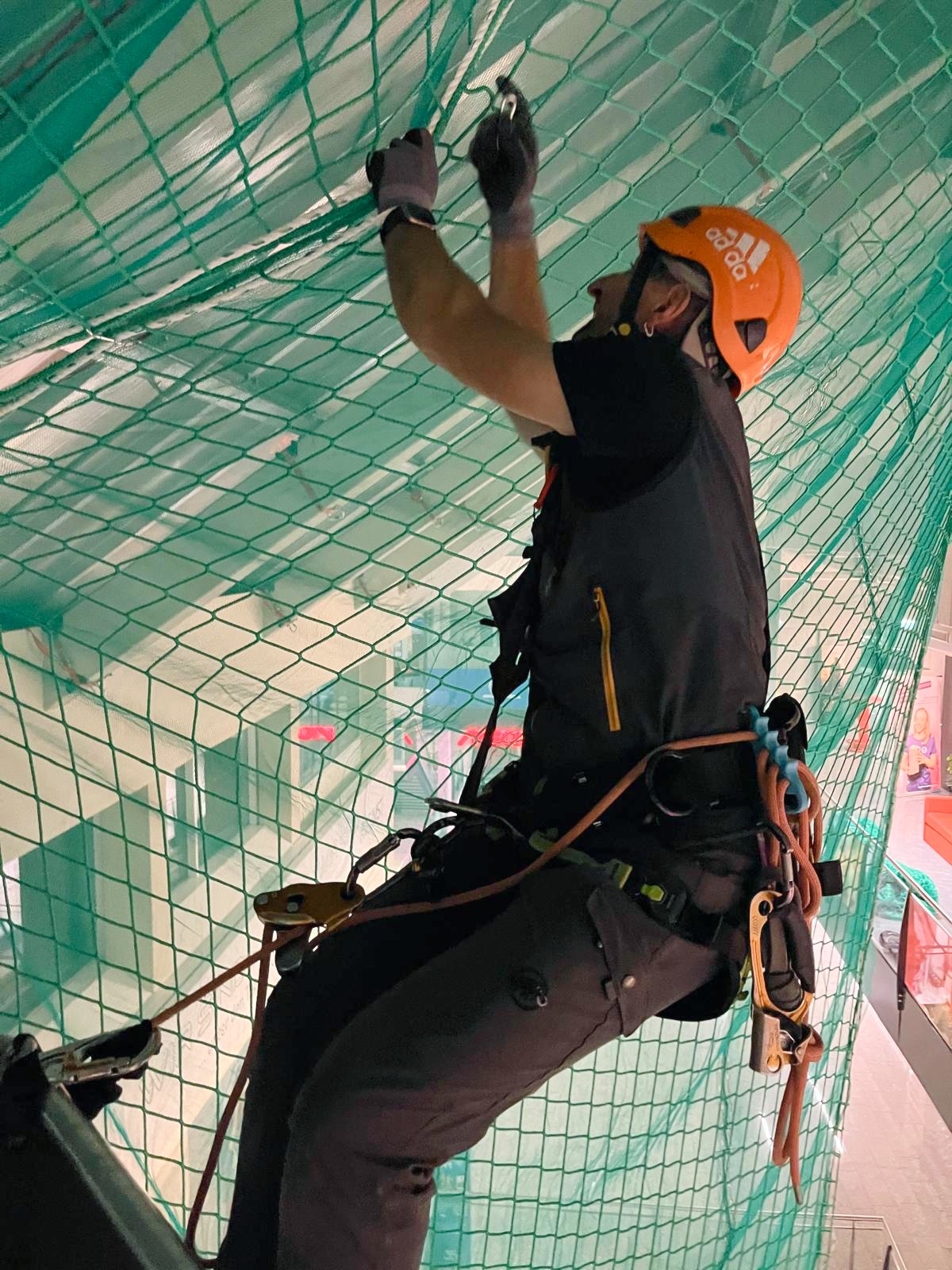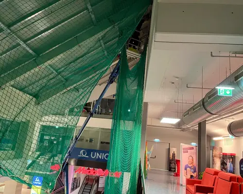 Bei der Neueindeckung des Daches im Einkaufszentrum wurde ein umfassendes Sicherheitsnetzsystem installiert.